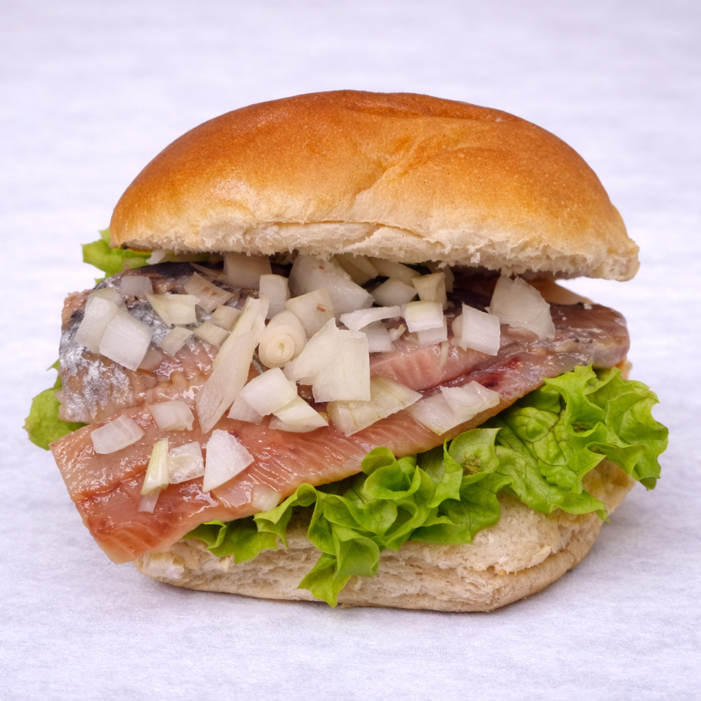 Geniet van een vers broodje, rijkelijk belegd met Hollandse nieuwe haring, met of zonder uitjes. De verse haring is zorgvuldig geselecteerd en perfect voor een authentieke smaakbeleving.